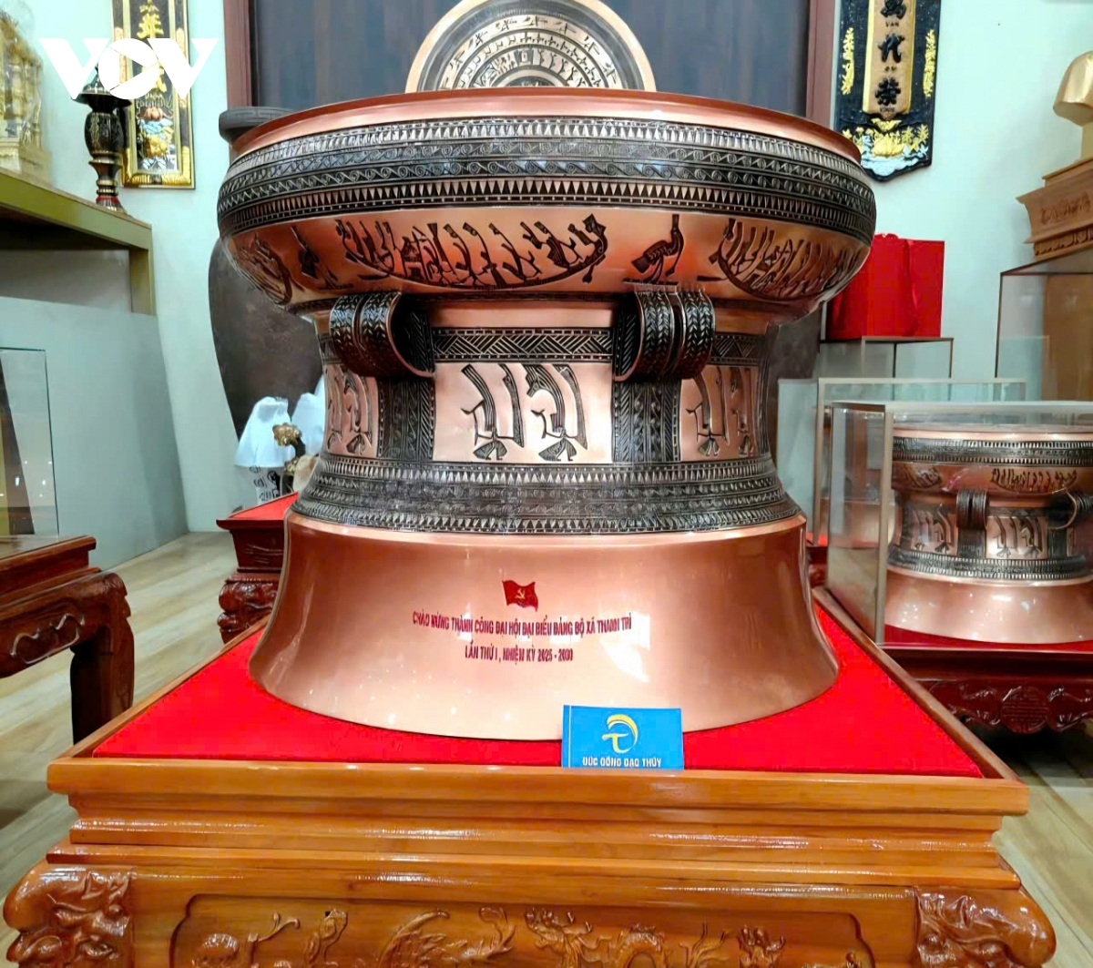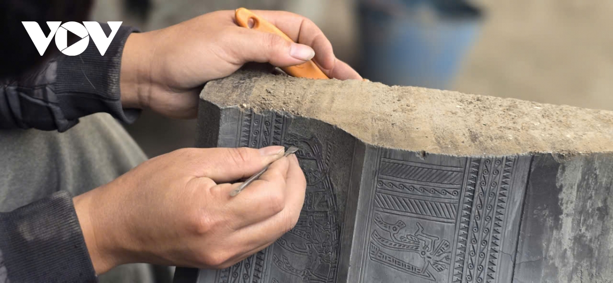 Những sản phẩm đồ thờ, trống đồng, thạp đồng dần lộ diện sau nhiều ngày chế tác thủ công tỉ mỉ. Từ lớp khuôn đất thô ráp, hình hài cổ kính hiện ra dưới bàn tay người thợ làng nghề. Mỗi đường nét hoa văn, mỗi mảng khối đều được chạm khắc cẩn trọng, gắn với ký ức văn hóa lâu đời. Ánh đồng ánh lên sắc trầm ấm, mang theo hơi lửa, mồ hôi và niềm tự hào của người thợ, làm nên giá trị bền vững cho từng sản phẩm.