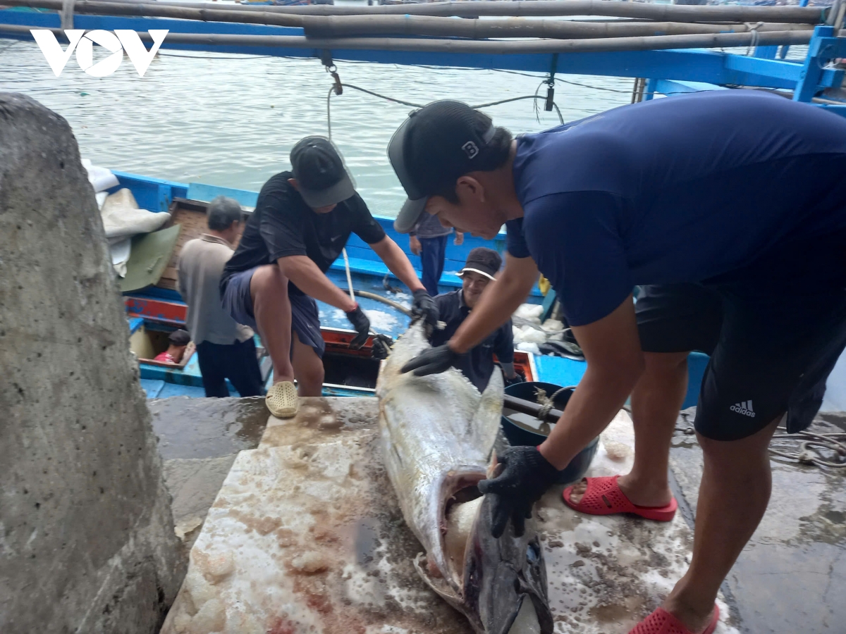 Những ngày sau Tết, mỗi sáng sớm, Cảng cá Hòn Rớ và chợ đầu mối thủy sản Nam Trung Bộ, phường Nam Nha Trang, tỉnh Khánh Hòa đã rộn ràng tiếng người, tiếng máy. Từng con tàu nối đuôi nhau vào bến sau hành trình dài ngày trên biển. Lá cờ đỏ sao vàng bay phần phật trên nóc cabin. Dưới hầm tàu, những con cá ngừ đại dương nặng 40-50 kg được nhanh tay chuyển lên bờ.