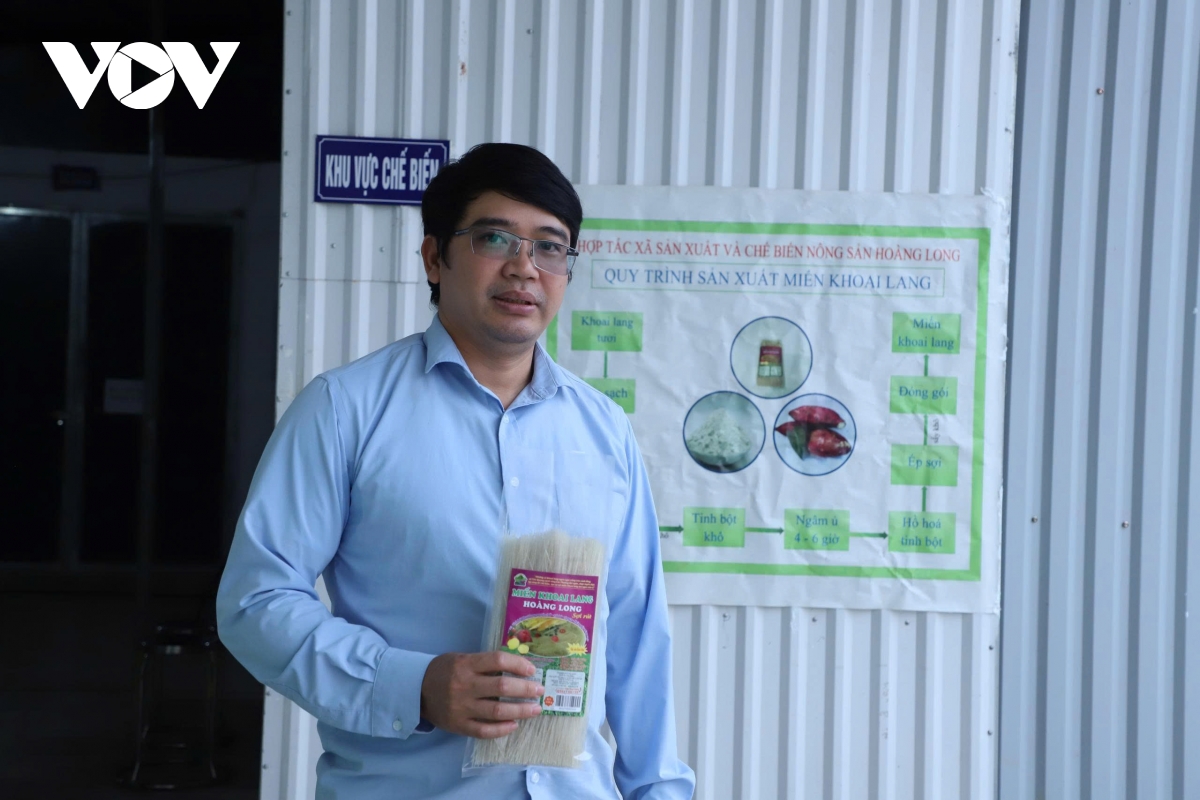VOV.VN - Nhiều năm liền, khoai lang của bà con địa phương rơi vào cảnh được mùa nhưng khó tiêu thụ, phải đổ bỏ. Giải bài toán đầu ra nông sản, anh Quách Hạ Long thành lập Hợp tác xã sản xuất và chế biến nông sản Hoàng Long, xã Nho Quan, tỉnh Ninh Bình, đầu tư chế biến miến khoai lang, tạo đầu ra bền vững cho sản phẩm.