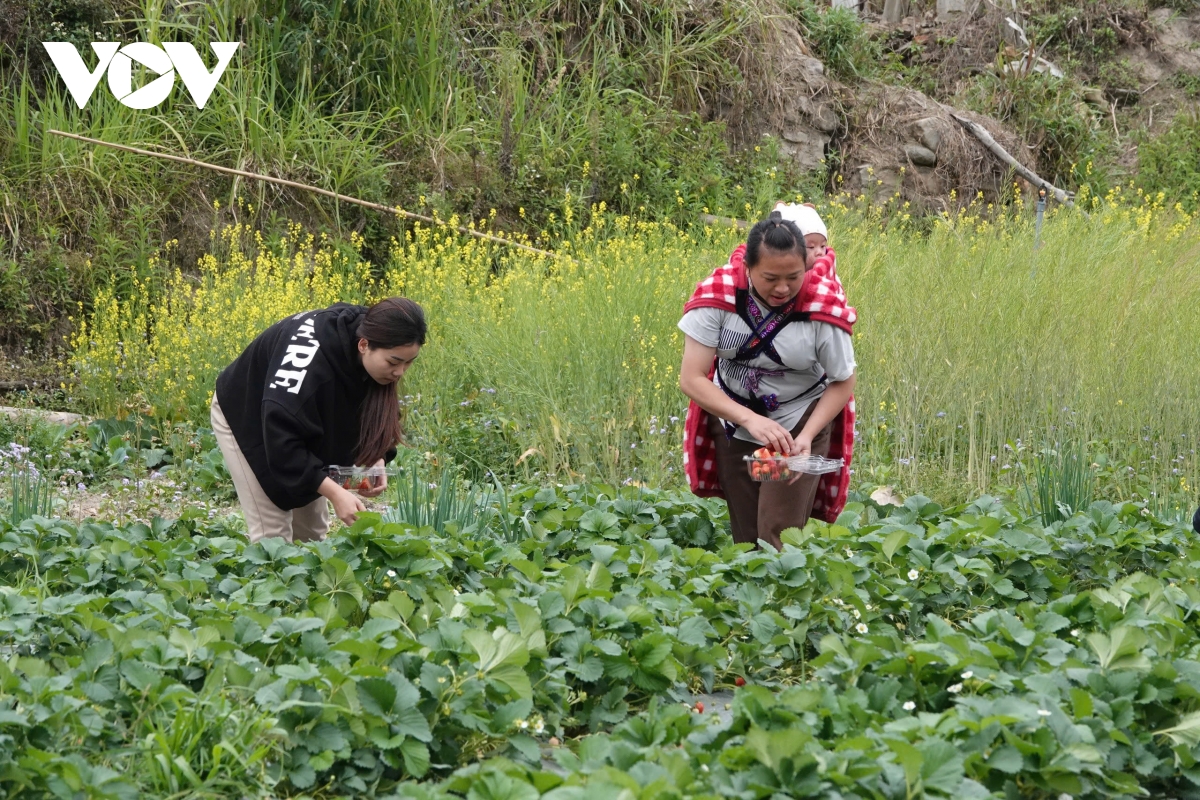 Không chỉ cho thu nhập từ việc bán quả, vườn dâu tây của các hộ đồng bào Mông ở Mù Cang Chải còn thu hút đông đảo du khách đến tham quan, trải nghiệm, có thể trở thành một sản phẩm du lịch độc đáo trong tương lai.