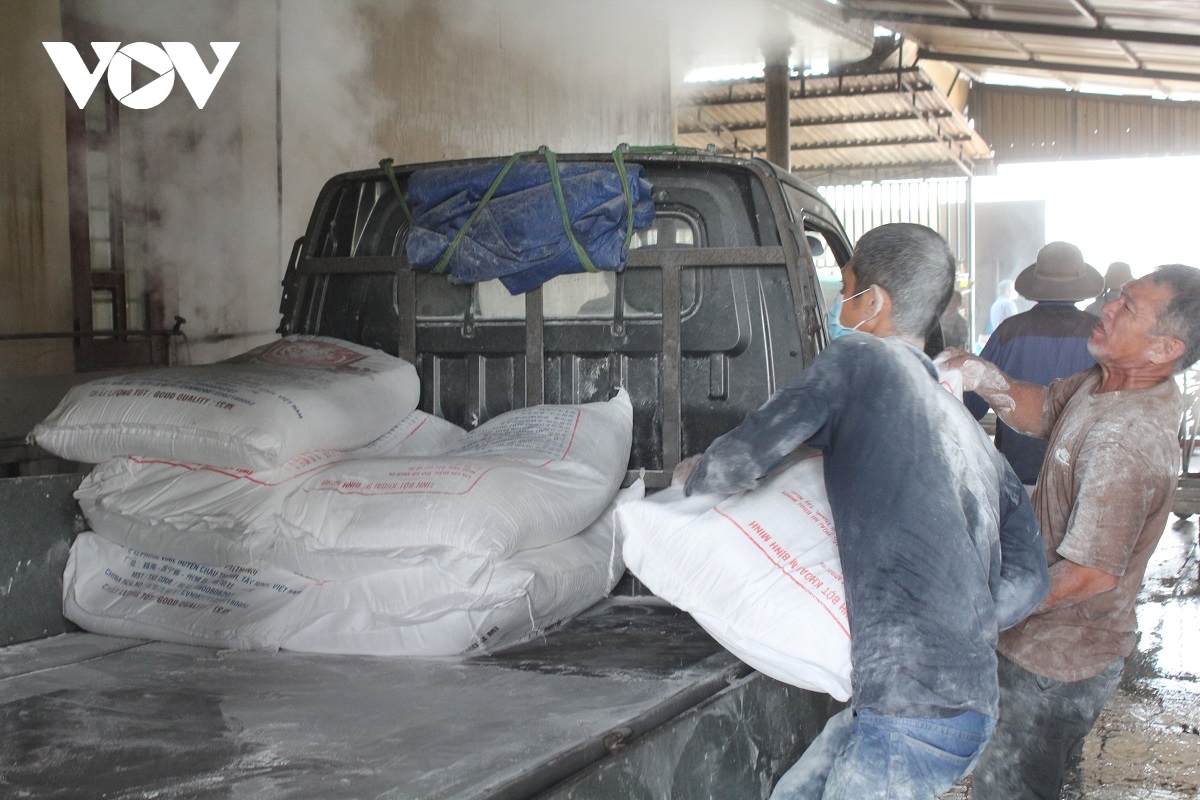 Công đoạn vận chuyển bột vào lò cũng hết sức khẩn trương