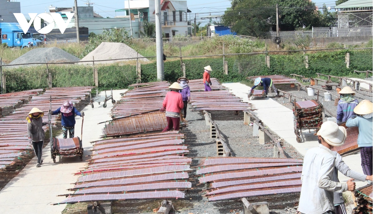 VOV.VN - Những ngày ngày, nghề bánh tráng ở vùng biển Lâm Đồng vào mừa sản xuất cao điểm. Nhu cầu thị trường tăng nhanh khiến cho lao động tại các hộ làm nghề trở nên tất bật hơn thường nhật. Dù vất vả nhưng ai cũng háo hức, tranh thủ làm để tăng thu nhập dịp Tết Nguyên đán.