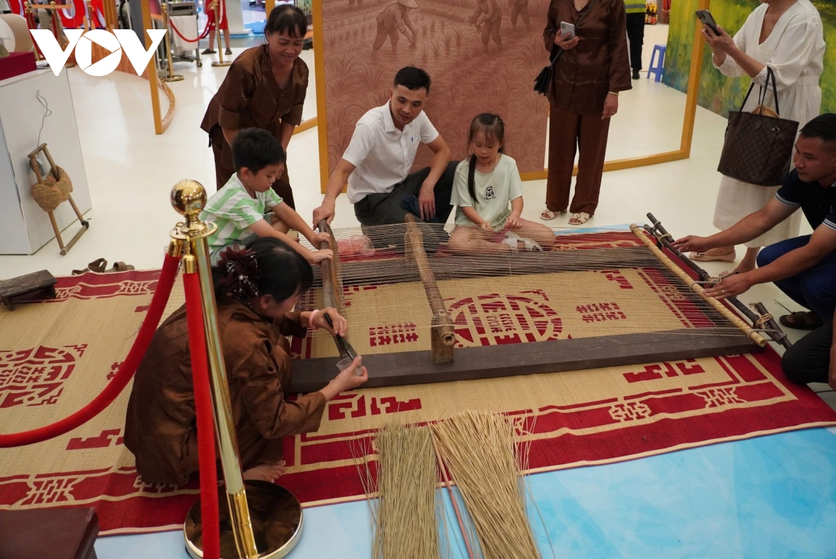 Người dân xã Phụ Dực (Hưng Yên) trình diễn dệt chiếu cói thủ công tại Tuần Văn hoá, thể thao và du lịch tỉnh Hưng Yên năm 2025