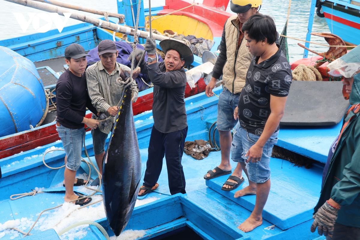 VOV.VN - Những ngày qua, các tàu khai thác cá ngừ đại dương xuyên Tết ở tỉnh Phú Yên trở về bờ trên thuyền đầy cá. Giá bán cá ổn định nhiều ngư dân ở tỉnh này phấn khởi chuẩn bị mở biển đầu năm 2025.