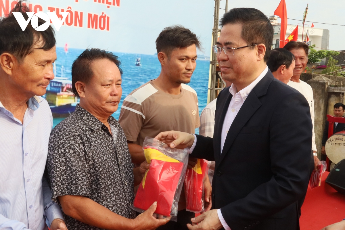 Tại buổi lễ, ông Nguyễn Hoàng Giang, Chủ tịch UBND tỉnh Quảng Ngãi đã trao cờ Tổ quốc tặng ngư dân xã Vạn Tường.