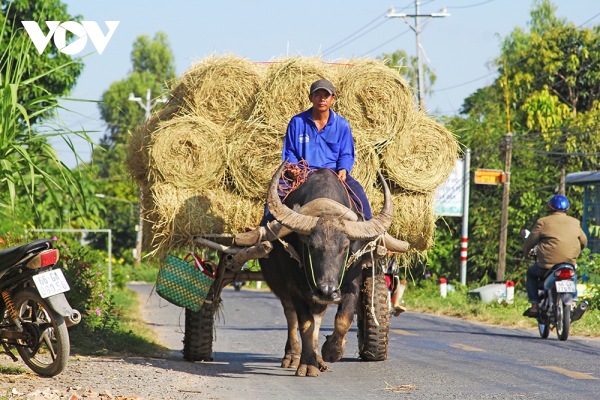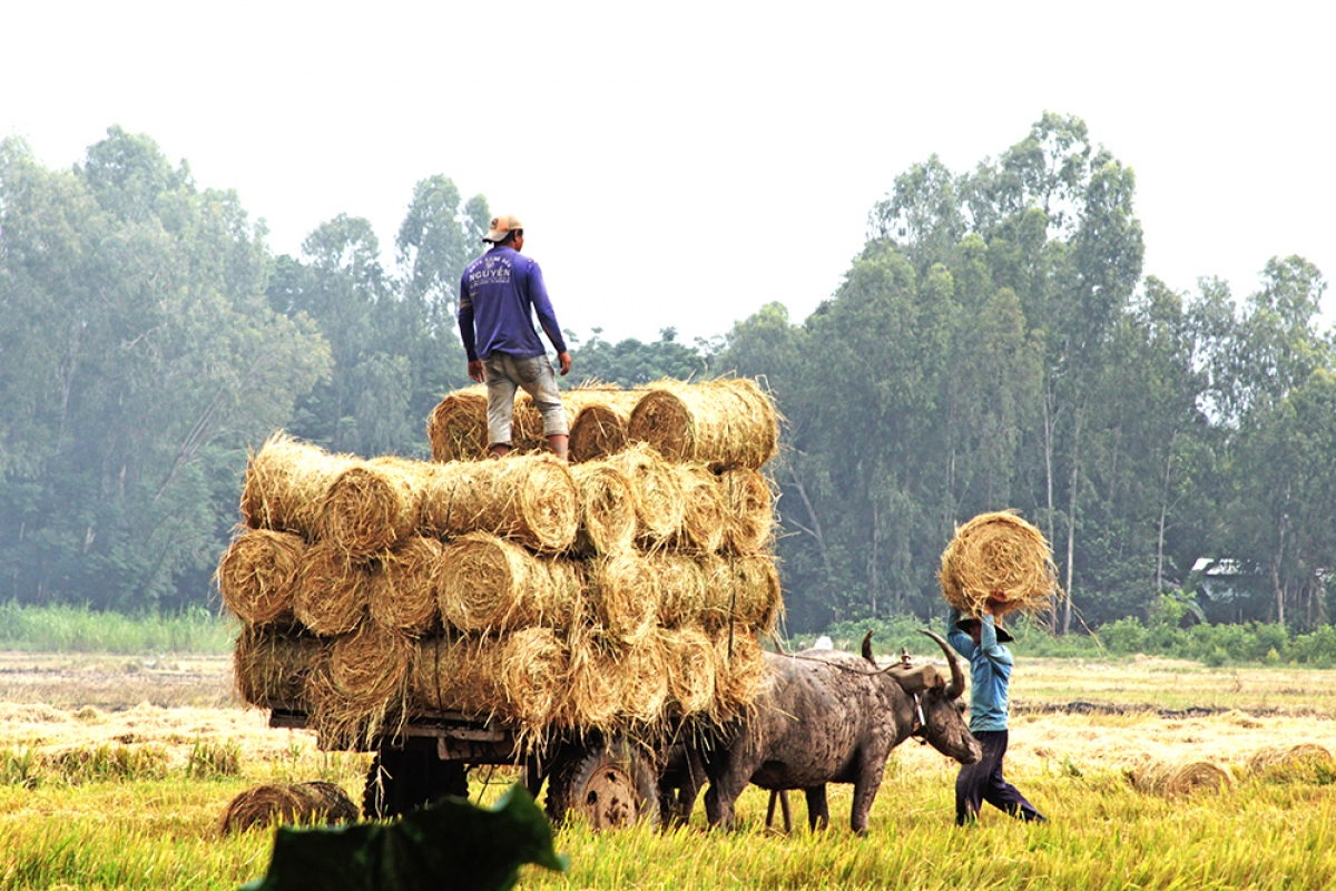 Người dân vận chuyển rơm về nhà để chăn nuôi gia súc