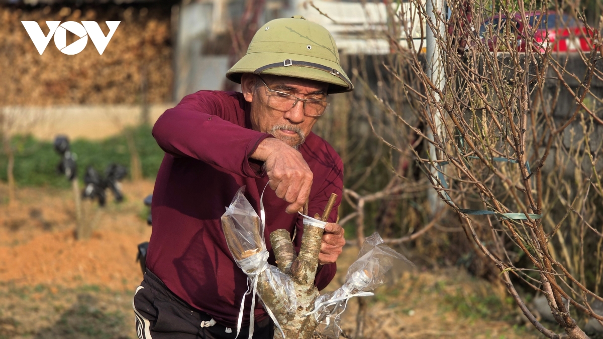 Ông Nguyễn Thăng Hay, tại thôn 6, xã Xuân Du, dù đã gần 70 tuổi nhưng ông Hay vẫn cần mẫn bên những gốc đào, nhà ông có 6 sào trồng đào với hơn 700 gốc đào chuẩn bị cho ra thị trường.