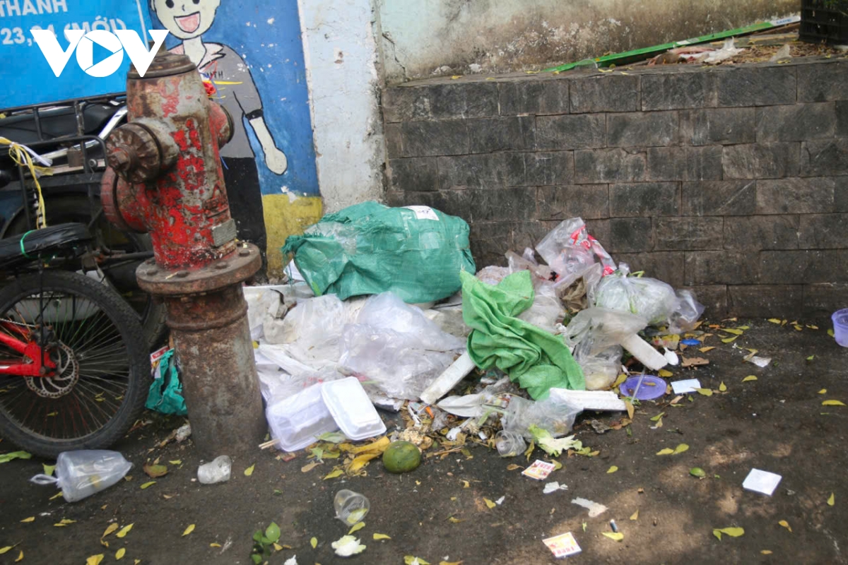 Không chỉ gây ùn tắc, chợ tạm còn ảnh hưởng đến mỹ quan đô thị và môi trường. Rác thải, nước thải từ hoạt động buôn bán thường bị xả trực tiếp ra đường. Trước cổng Trường Tiểu học Cửu Long, rác tồn đọng trong khi một số điểm bán hàng vẫn hoạt động, tiềm ẩn nguy cơ mất an toàn cho học sinh.