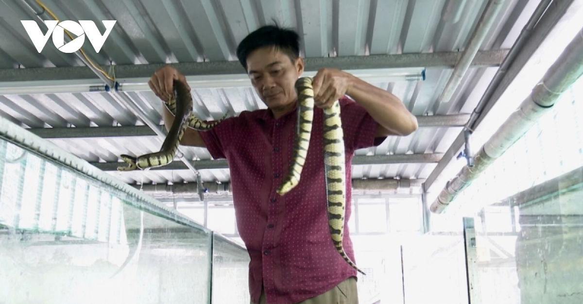 Làm nghề sửa xe máy, nhưng với niềm đam mê chăn nuôi, cách đây 6 năm anh Trương Thành Ngôn ở thị trấn Cây Dương huyện Phụng Hiệp, tỉnh Hậu Giang đã đầu tư gần chục triệu đồng mua 5 cặp rắn ri voi về nuôi thử nghiệm. Tuy nhiên, điểm độc đáo ở mô hình của anh Ngôn là rắn được nuôi trong lồng kính trên tầng 3 của căn nhà anh đang ở, thay vì nuôi trong vèo, ao, mương, xô, chậu hay bể xi măng như các nông dân khác.