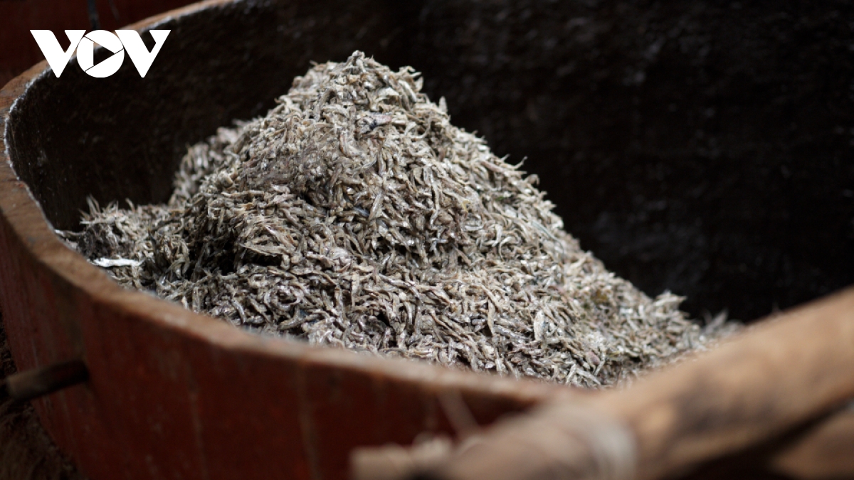 Cá cơm tươi được muối ngay trên tàu, chuẩn bị cho hành trình thành nước mắm trứ danh.