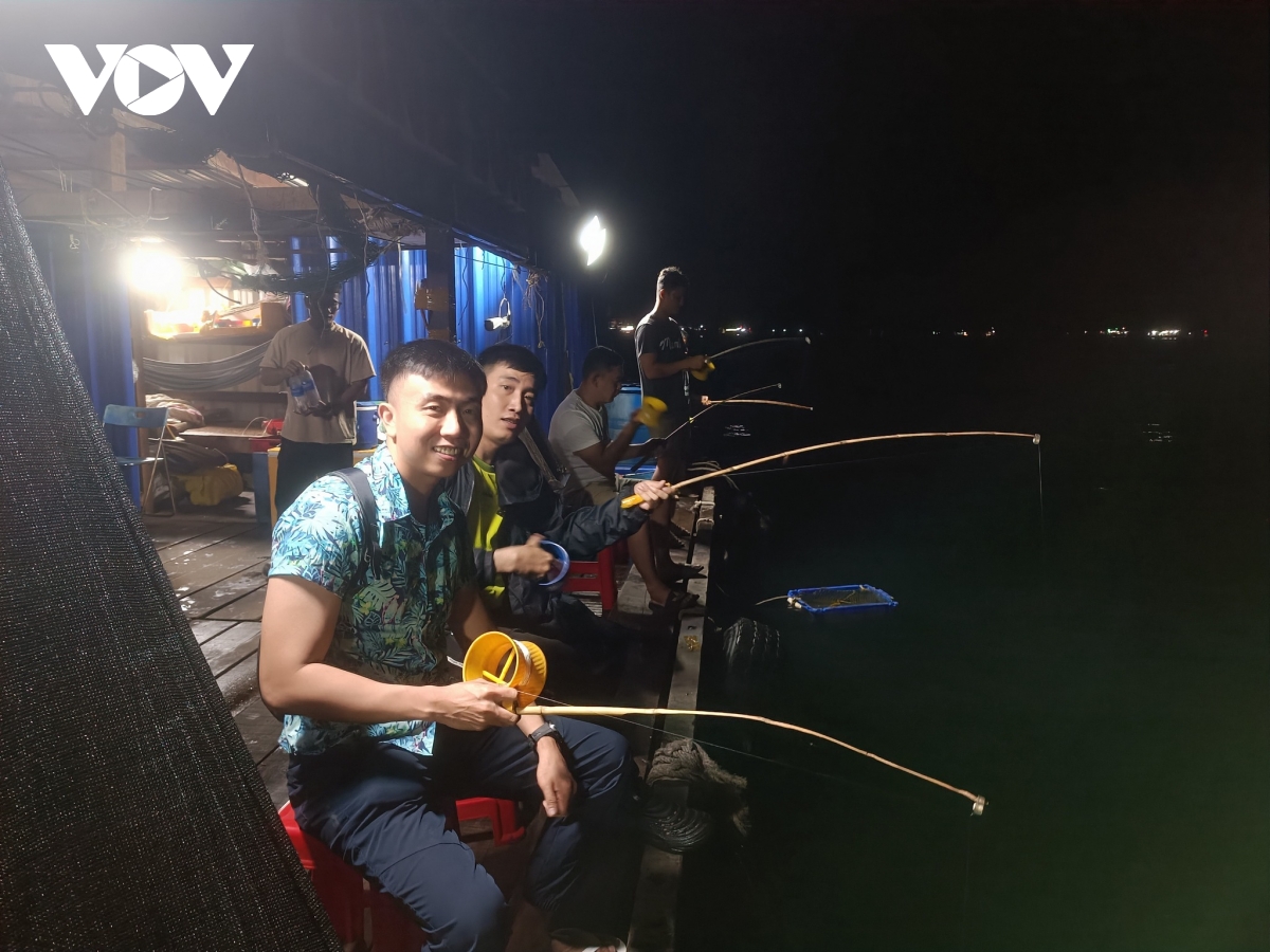 "Có khách xuống bè mình tiếp đãi khách, câu cá chơi giải trí, nướng cá dưới bè, trời êm thì mình cho khách xuống, trời êm thì mình mới cho khách xuống được", anh Nguyễn Thanh Tùng, hộ nuôi cá ở đảo Nam Du chia sẻ.