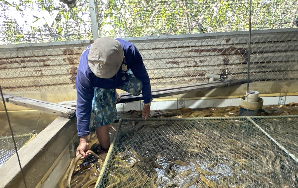 "Tôi nuôi lươn lần đầu tiên, mua 5.000 con nuôi 8 tháng, sau khi trừ chi phí thì lời được 18 triệu nên tôi mới làm thêm mấy chuồng này. 3 năm nay mấy em chồng tôi nuôi lươn rất thành công, một năm thu hoạch hơn 300 triệu", bà Kim Sang cho biết.