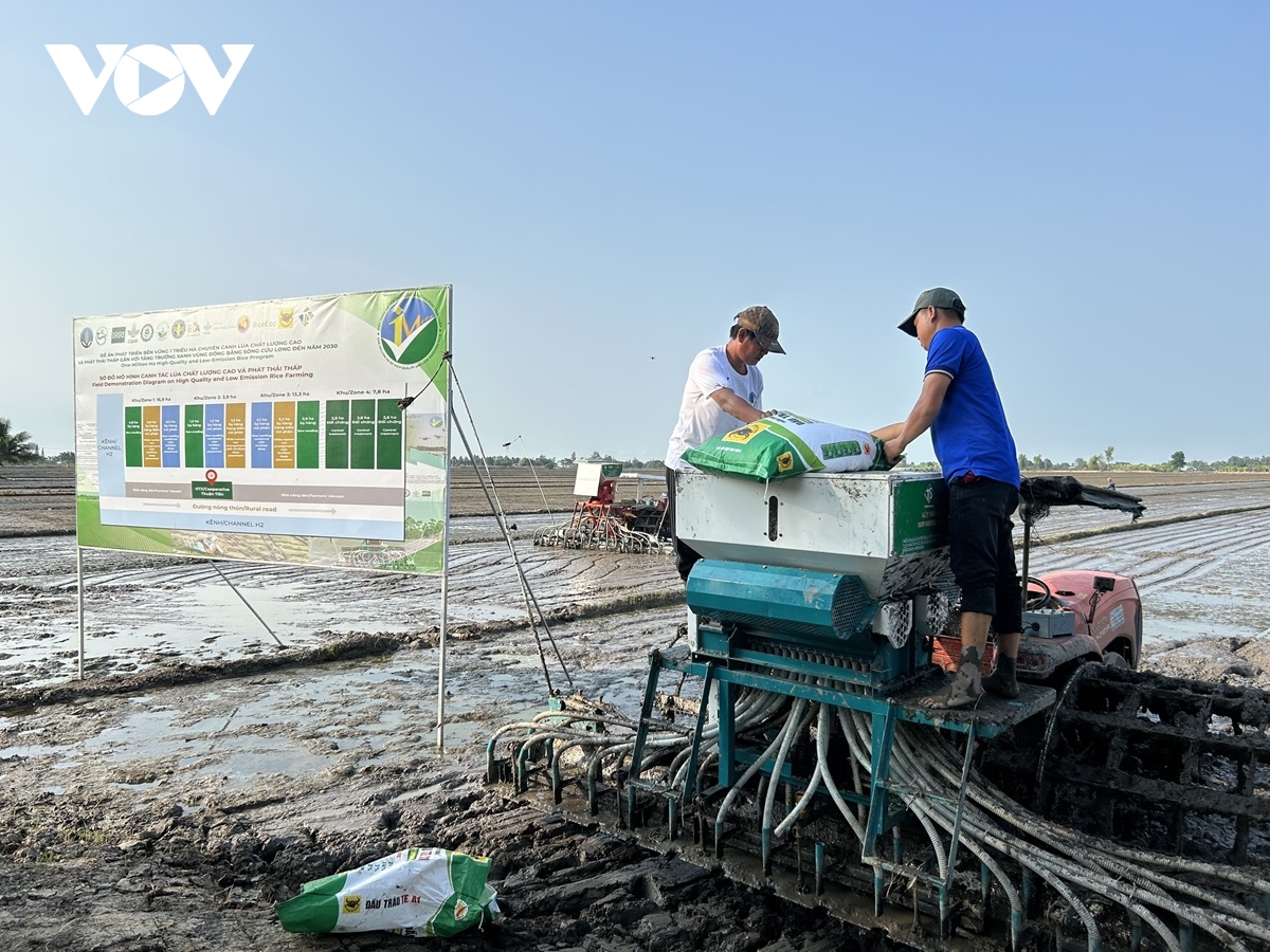 Để giảm phát thải ròng bằng “0” vào 2050 theo cam kết, Việt Nam đang triển khai nhiều giải pháp trong đề án một triệu hecta lúa ở ĐBSCL với sự tham gia của đối tác công tư. Theo ông Lê Đức Thịnh, Cục trưởng Cục Kinh tế hợp tác và Phát triển nông thôn, trong đề án về phía nhà nước sẽ đảm nhiệm vai trò khởi tạo và hỗ trợ bằng cơ chế; các chuyên gia, nhà khoa học hướng dẫn quy trình, còn doanh nghiệp với vai trò liên kết hợp tác xã, nông hộ và kết nối, dẫn dắt thị trường.