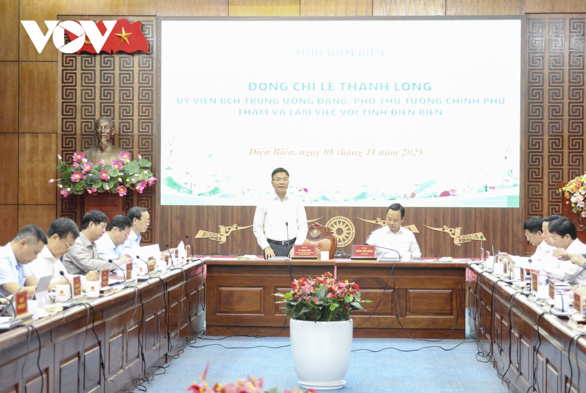 VOV.VN - Chiều nay 8/11, Phó Thủ tướng Lê Thành Long cùng đoàn công tác của Chính phủ đã làm việc với lãnh đạo chủ chốt tỉnh Điện Biên về tình hình phát triển kinh tế - xã hội, quốc phòng - an ninh và giải ngân vốn đầu tư công năm 2025.