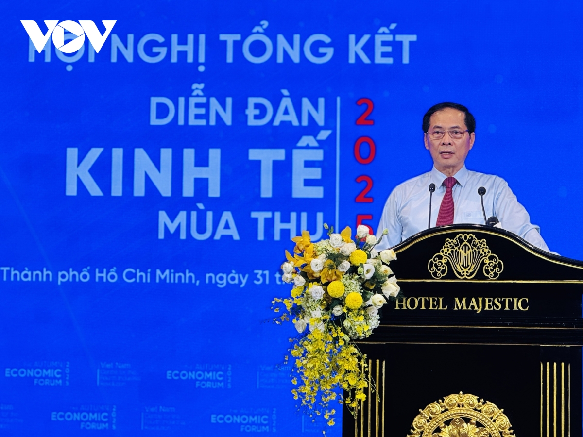 VOV.VN - Chiều 31/12, TP.HCM tổ chức Hội nghị tổng kết Diễn đàn Kinh tế Mùa thu năm 2025. Phát biểu đánh giá, định hướng cho Diễn đàn, Phó Thủ tướng Chính phủ Bùi Thanh Sơn nhấn mạnh, cần nâng tầm, nâng cao uy tín và phát huy vai trò tích cực của Diễn đàn Kinh tế Mùa thu.