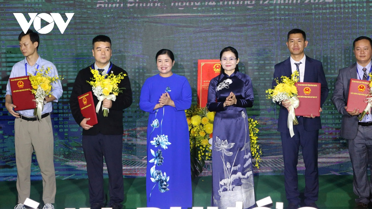 Tại Hội nghị này, tỉnh Bình Phước đã trao trao quyết định chủ trương, giấy chứng nhận đầu tư cho 31 dự án với tổng mức đầu tư 620 triệu USD. Lãnh đạo tỉnh Bình Phước ký kết hợp tác với các nhà đầu tư.