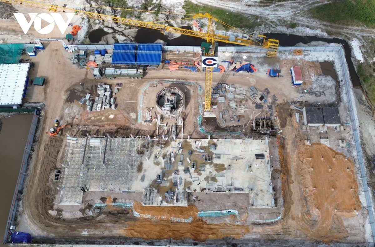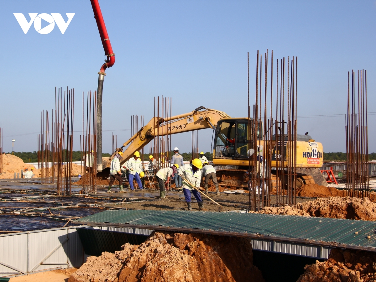 Trên diện tích hơn 200ha, dự án được chia thành nhiều phân khu, nhiều mũi cùng thi công. Tiếng máy khoan, xe ben, trạm trộn bê tông vận hành liên tục, tạo nên nhịp lao động sôi động những ngày đầu năm. Tại khu vực nhà ga hành khách, công nhân làm việc theo ca, tranh thủ từng giờ nắng ráo để đẩy nhanh tiến độ.