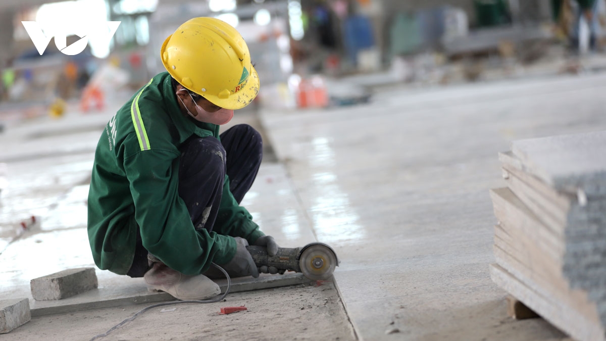 Hơn 13.000 chuyên gia, kỹ sư, công nhân chia thành 3 ca, 4 kíp làm việc xuyên đêm, gấp rút hoàn thiện nhà ga hành khách