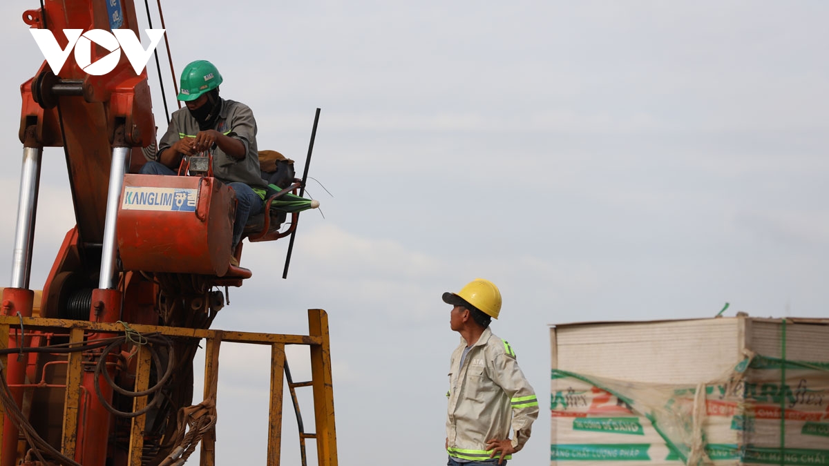 Lực lượng công nhân hoạt động hết công suất, đảm bảo sự chính xác, an toàn tuyệt đối trên công trường sân bay Long Thành