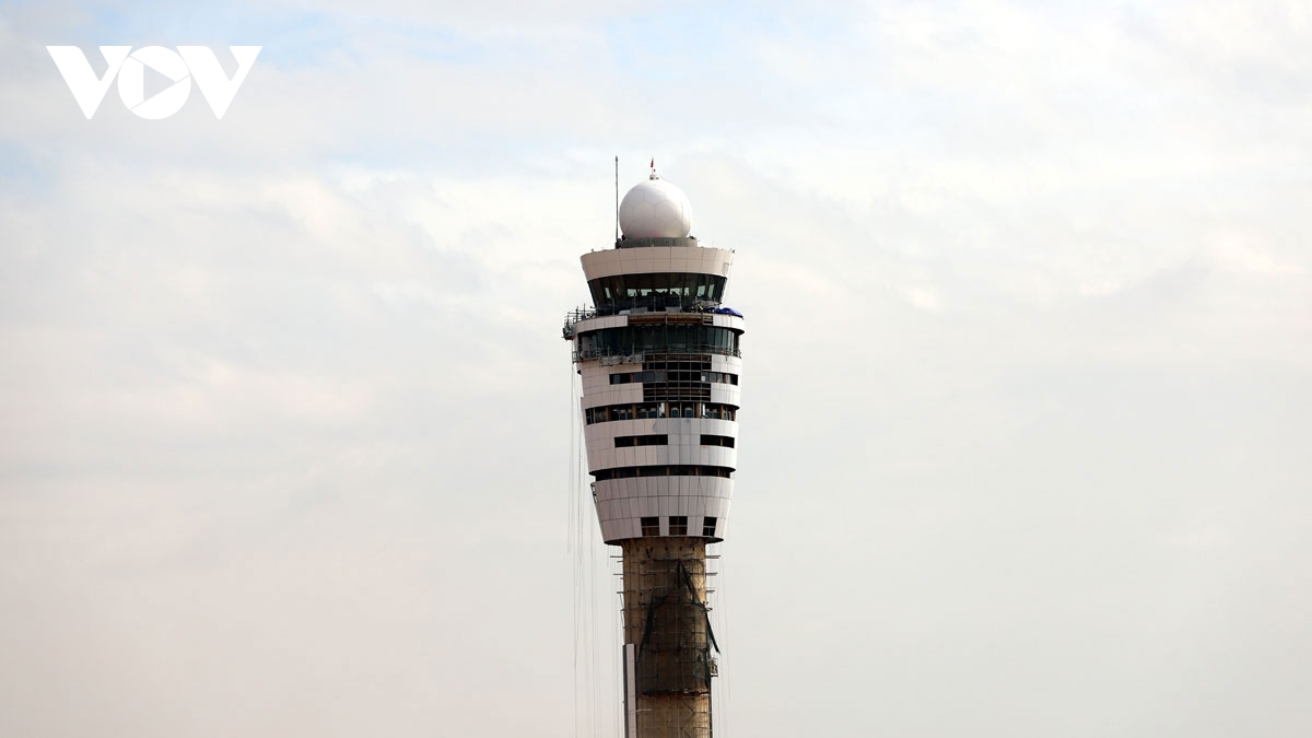 Đài kiểm soát không lưu giữa đại công trường, như "ngọn hải đăng" quan sát toàn bộ hoạt động của khu bay và các tuyến giao thông kết nối