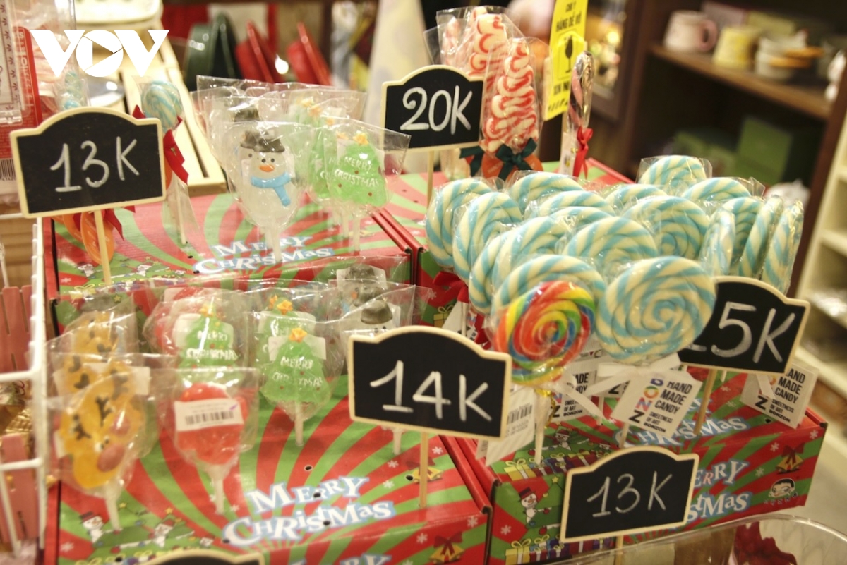 Tại các cửa tiệm lưu niệm nhỏ, nhiều sản phẩm sáng tạo được trưng bày như ly in họa tiết bánh cookie, núi tuyết, cây thông; quả cầu tuyết, gấu bông, đồ handmade, nến thơm, lót ly… Giá các mặt hàng này nhìn chung ở mức vừa phải, dao động từ 40.000 – 150.000 đồng đối với sản phẩm nhỏ lẻ. Đáng chú ý, dịch vụ gói quà theo chủ đề Giáng sinh chỉ từ 1.000 đồng, phù hợp nhu cầu tặng quà nhanh gọn nhưng vẫn đảm bảo tính thẩm mỹ.