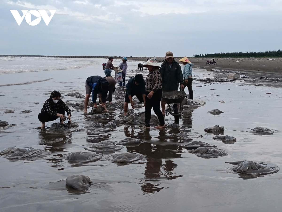 VOV.VN - Gió mùa bất thường những ngày đầu hè, người dân ven biển Thịnh Long (Nam Định) bất ngờ đón một “mùa sứa” chưa từng có. Không cần tàu thuyền hay lặn sâu, chỉ trong vài giờ thủy triều rút buổi sáng, hàng chục tấn sứa đã được gom ngay tại bờ biển.
