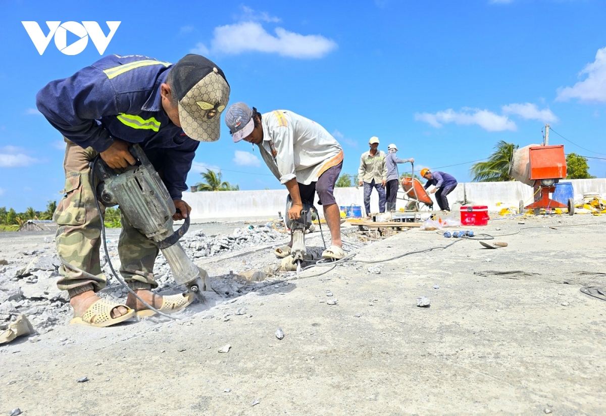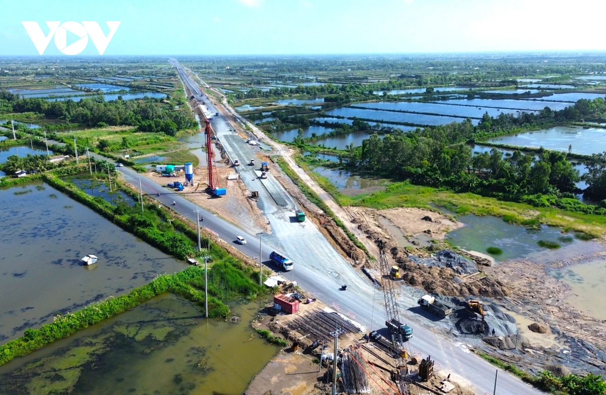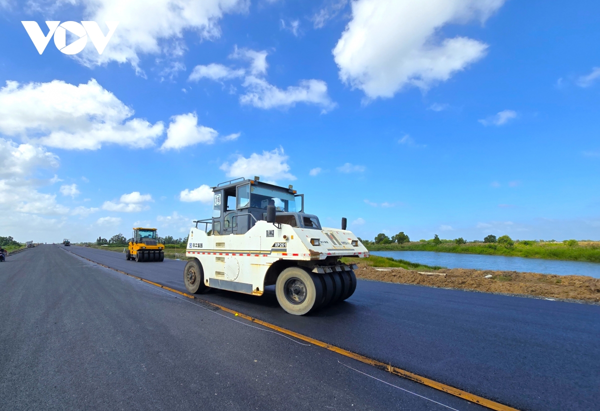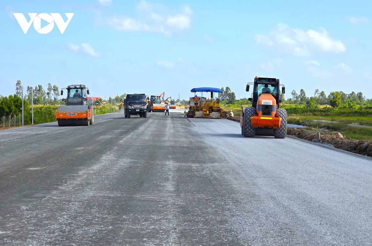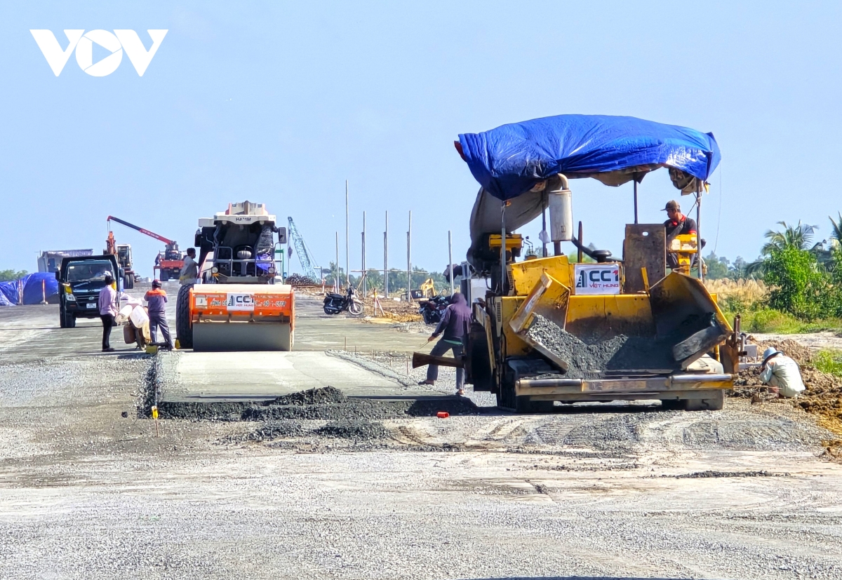 VOV.VN - Khoảng 1 tuần nữa là đến thời điểm thông xe kỹ thuật cao tốc Cần Thơ – Cà Mau. Các đơn vị thi công đang tất bật làm ngày đêm để đảm bảo tiến độ.