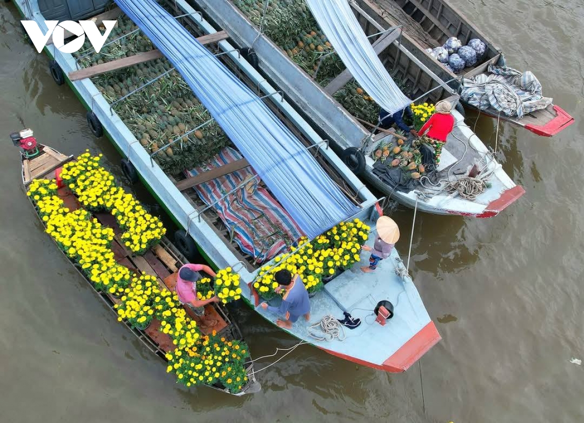Nhịp sống những ngày cận Tết hối hả không thua kém trên đất liền. Ghe xuồng chở trái cây, hàng hóa, cá mắm, hoa kiểng nối đuôi nhau “ăn hàng” và tỏa đi khắp nơi. Đây cũng là mùa làm ăn khá giả nhất của dân thương hồ vì nhu cầu vận chuyển hàng hóa rất lớn.