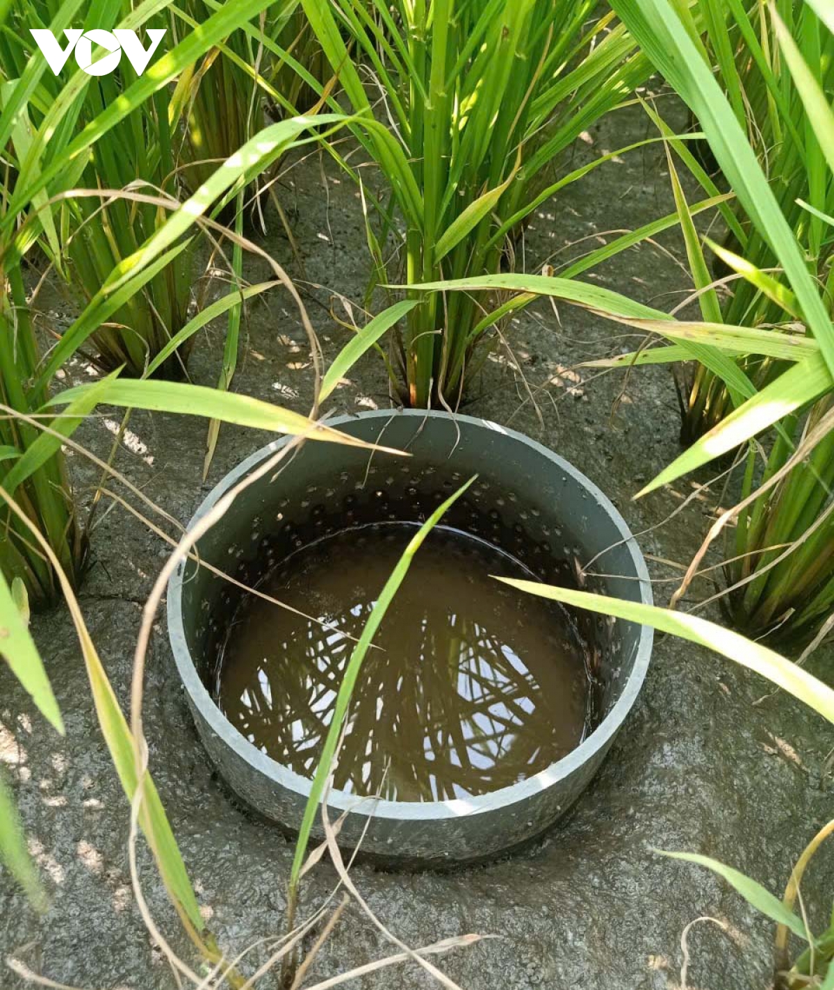 Thiết bị đo nước được lắp đặt trên các thửa ruộng