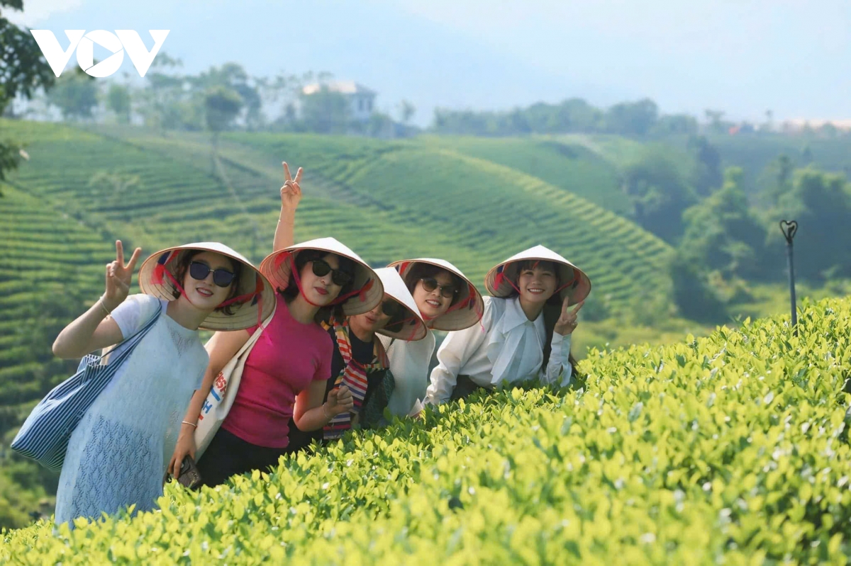 Du khách hào hứng với những trải nghiệm ở vùng chè Tân Cương