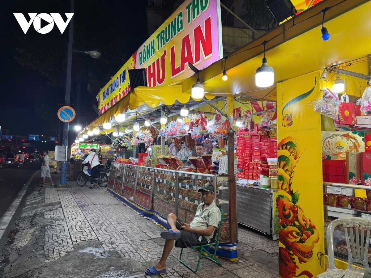 Dọc các tuyến đường này, hàng loạt sạp hàng được dựng lên với đủ loại bánh từ nhiều thương hiệu khác nhau. Anh Minh, chủ một sạp bánh trên đường Xô Viết Nghệ Tĩnh, cho biết: "Năm nay tôi dựng sạp sớm hơn mọi năm để kịp đón những đơn hàng sỉ đầu tiên. Dù lượng khách lẻ chưa nhiều nhưng các đơn đặt hàng từ các công ty đã bắt đầu ổn định".