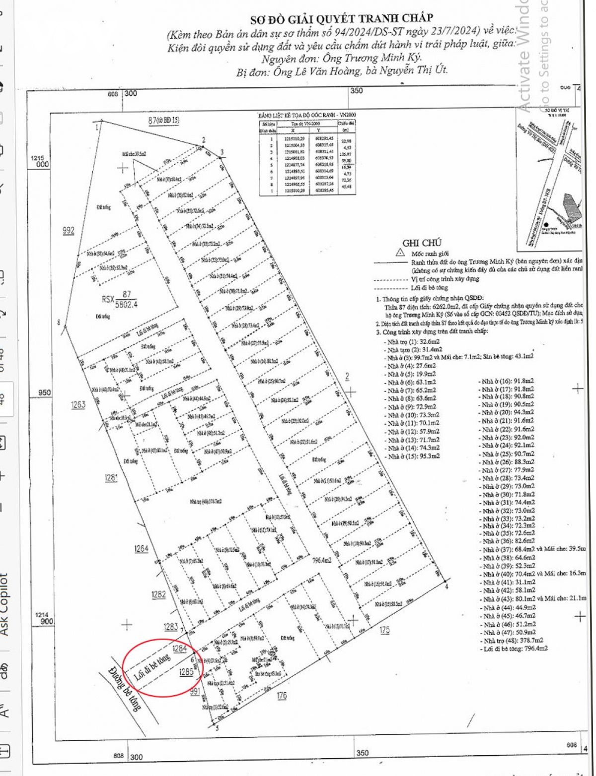 Sơ đồ đất đang tranh chấp