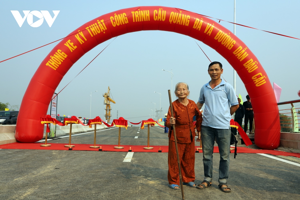 Bà con tay bắt mặt mừng cùng dạo bước trên cây cầu mới, niềm hân hoan, phấn khởi vì công trình thông tuyến đúng dịp kỷ niệm 50 năm Ngày quê hương được giải phóng. Từ ngày khởi công dự án cầu Quảng Đà, cứ vài ngày, ông Nguyễn Viết Minh, ở xã Hòa Khương, thành phố Đà Nẵng ra bờ sông ngắm về công trường xây dựng cầu Quảng Đà.