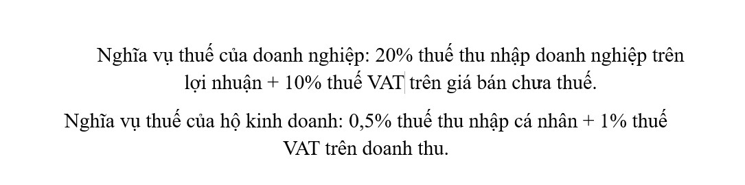 Ông Tuấn dẫn chứng, theo quy định hiện tại, nghĩa vụ thuế của doanh nghiệp và hộ kinh doanh lĩnh vực thương mại được thực hiện như sau: