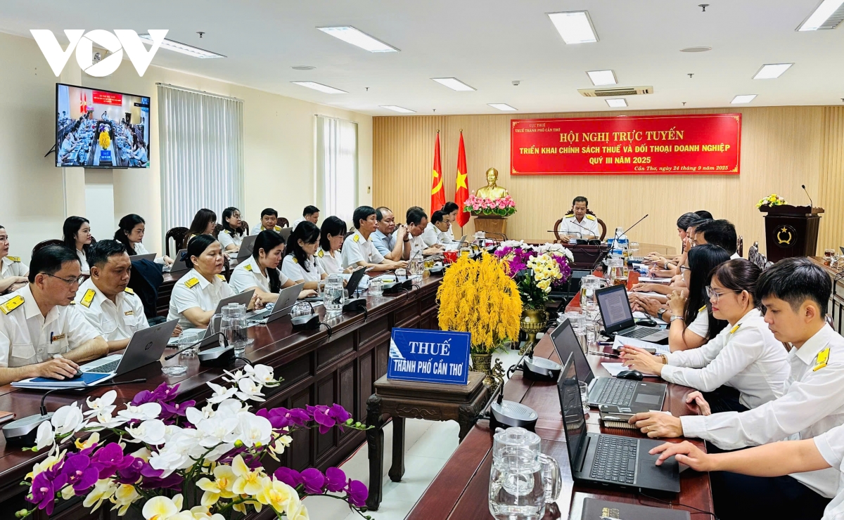 VOV.VN - Ngày 24/9, Thuế thành phố Cần Thơ tổ chức hội nghị trực tuyến triển khai chính sách thuế và đối thoại doanh nghiệp quý III năm 2025 với sự tham gia của khoảng 500 doanh nghiệp trên địa bàn. Việc tổ chức nhằm truyền tải kịp thời một số chính sách thuế mới được bạn hành và có hiệu lực trong quý 3 năm 2025.