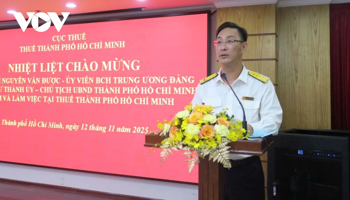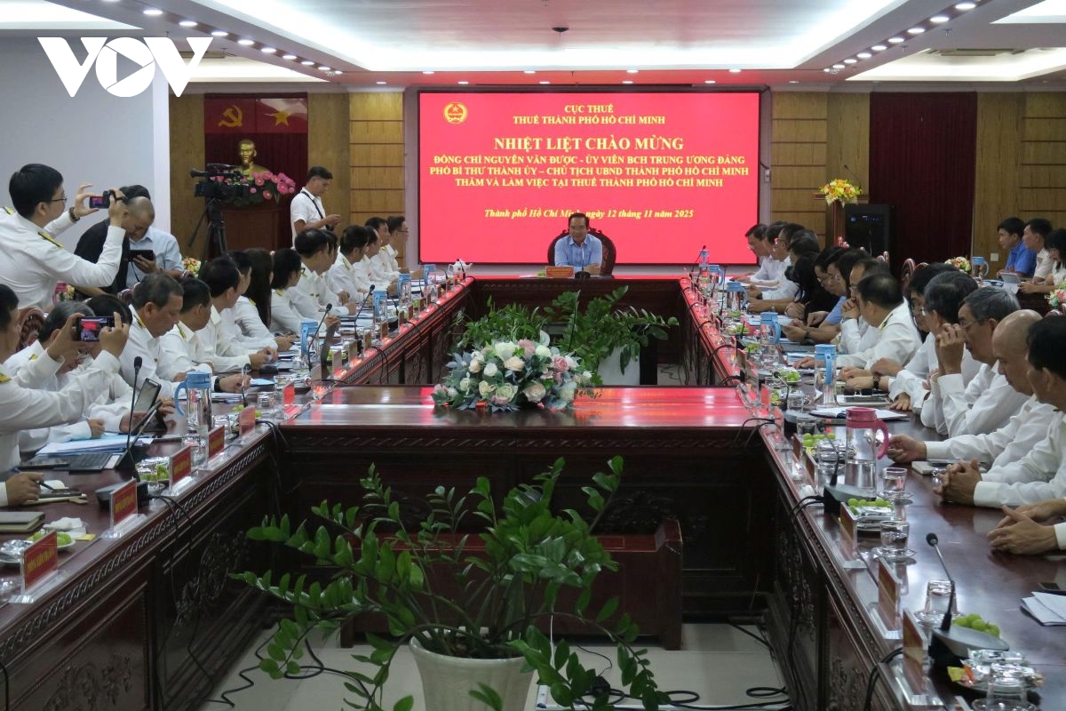 VOV.VN - Chiều 12/11, ông Nguyễn Văn Được, Phó Bí thư Thành uỷ; Chủ tịch UBND TP.HCM làm việc với Thuế TP về thu ngân sách năm 2025. Đến nay, còn hơn 1,5 tháng nữa mới kết thúc năm 2025, nhưng Thuế TP.HCM đã thu ngân sách vượt 2% so với chỉ tiêu của Chính phủ giao.