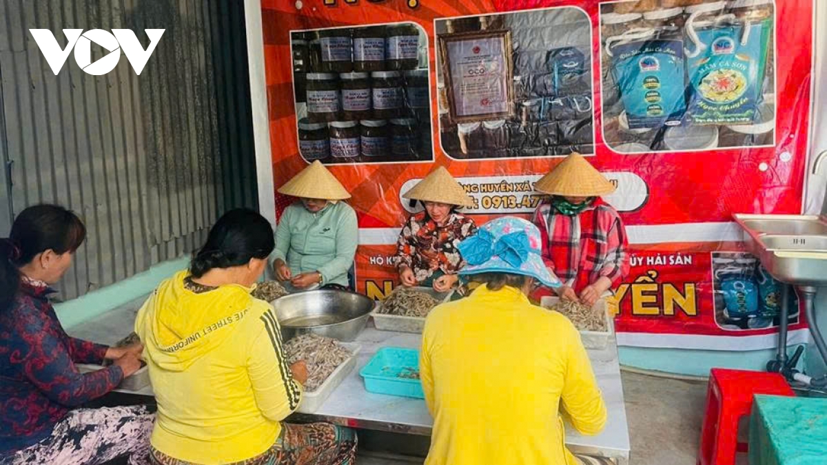 Tại cơ sở sản xuất tôm khô của chị Chuyển, đội ngũ lao động đang làm việc liên tục và tất bật để kịp cung ứng các đơn hàng cuối năm.