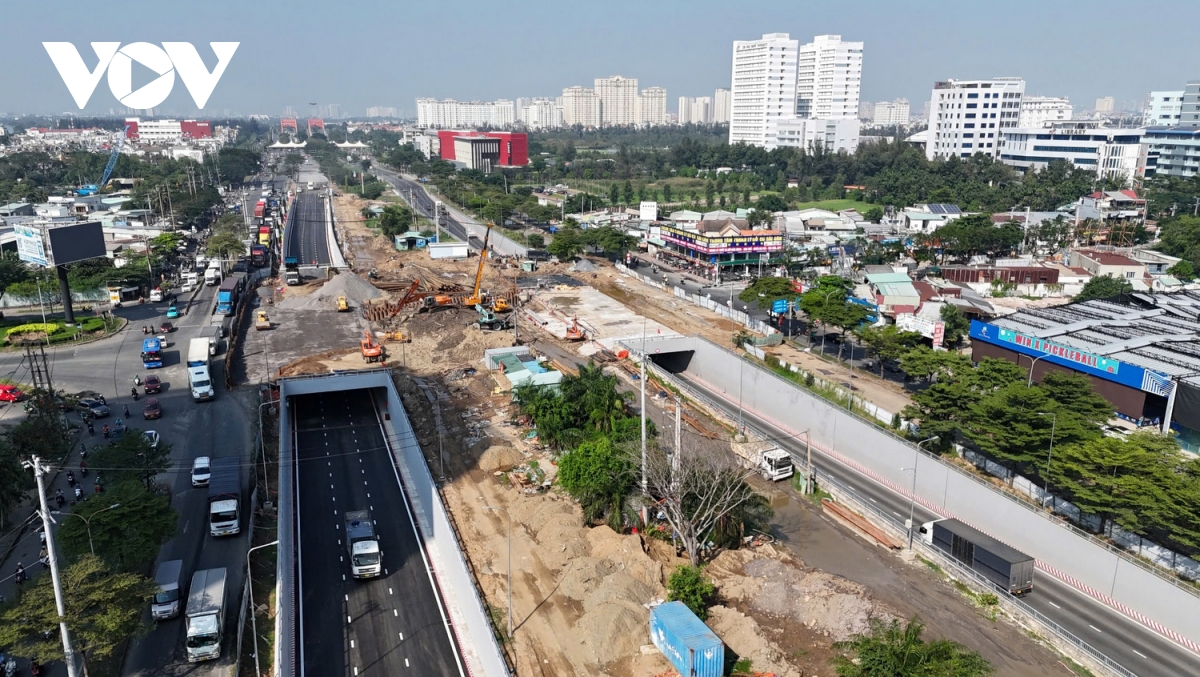 Gần đó, nhánh hầm HC1 thuộc dự án nút giao Nguyễn Văn Linh - Nguyễn Hữu Thọ (Quận 7) cũng được đưa vào khai thác. Dự án có tổng mức đầu tư 830 tỷ đồng, xây mới 2 hầm chui trên đường Nguyễn Văn Linh với tổng chiều dài mỗi hầm khoảng 456m. Bề rộng 2 hầm đảm bảo 6 làn xe ô tô chạy suốt 2 chiều tải trọng nặng (mỗi hầm 3 làn, chạy một chiều). Trước đó, hầm chui HC2 đã được đưa vào hoạt động từ tháng 10/2024, hiện Ban Giao thông đang nỗ lực các phần việc còn lại để đưa toàn bộ nút giao này vào hoạt động trước ngày 20/1/2025.