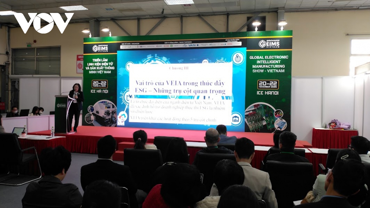 Trong khuôn khổ Triển lãm Quốc tế linh kiện điện tử và sản xuất thông minh tại Việt Nam (GEIMS 2025), Hiệp hội Doanh nghiệp Điện tử Việt Nam (VEIA) đã chủ trì Hội thảo “xây dựng chuỗi cung ứng bền vững ESG - từ lý thuyết đến thực tế”, nhằm mang đến những giải pháp thực tiễn, câu chuyện thành công và chiến lược hành động cụ thể, giúp DN chuyển đổi từ cam kết đến hành động, từ “tuân thủ” sang “dẫn đầu” trong hành trình triển khai ESG tại Việt Nam.