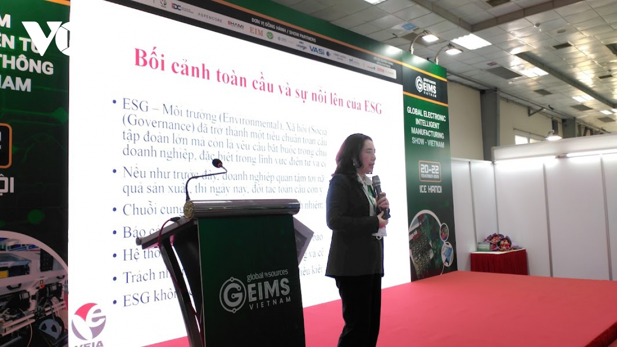 Theo bà Đỗ Thị Thúy Hương, Phó Chủ tịch Hiệp hội Công nghiệp Hỗ trợ Việt Nam, Ủy viên BCH Hiệp hội Doanh nghiệp Điện tử Việt Nam (VEIA), điện tử Việt Nam đang là đối tác đáng tin cậy trên bản đồ công nghệ thế giới. Phía các DN thành viên cũng kỳ vọng VEIA là tổ chức dẫn dắt, hướng dẫn thực thi ESG phù hợp, để kết nối với các tập đoàn đa quốc gia đang yêu cầu xây dựng bộ tiêu chuẩn ESG nội địa cho ngành điện tử.