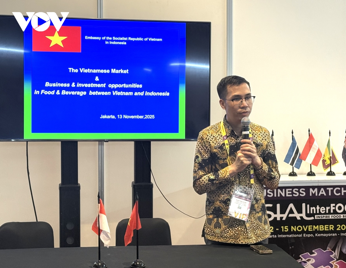 VOV.VN - Trong khuôn khổ Triển lãm Sial Interfood 2025 từ ngày 12-15/11 tại Jakarta, Indonesia đã diễn ra Diễn đàn kết nối giao thương giữa doanh nghiệp Việt Nam và Indonesia trong lĩnh vực thực phẩm và đồ uống.