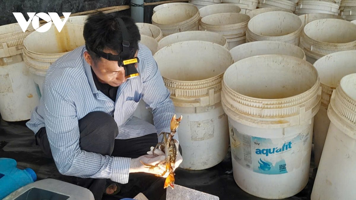 Anh Đào Phước Xoàn chia sẻ: “Bây giờ mình đã có kinh nghiệm rồi, làm nguyên một quy trình khép kín không bị ảnh hưởng. Ví dụ, giai đoạn đầu tiên nuôi trong cáp vèo gần 20 ngày, nếu thấy cua vắng mặt là biết đã chết từ nhỏ, thì thả lứa khác vào. Lứa kia mình chuyển qua ao khác rồi, cứ luân phiên vậy. Giai đoạn thứ ba là chuẩn bị cho cua thương phẩm, con nào còn sót lại thì vẫn bán cua thịt được. Con nào chuẩn bị lột thì đưa lên thùng, sau gần 10 ngày là sẽ lột. Nuôi cua thì thu hoạch từ từ nhưng bền vững hơn nuôi tôm thẻ. Hiện nay bà con có cua lột bán là mình thu mua hết, bao tiêu sản phẩm”.