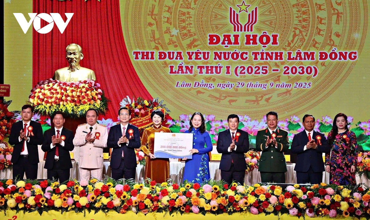 Nguyễn Hữu Nhơn (ngoài cùng bìa trái) tại Đại hội Thi đua yêu nước tỉnh Lâm Đồng năm 2025