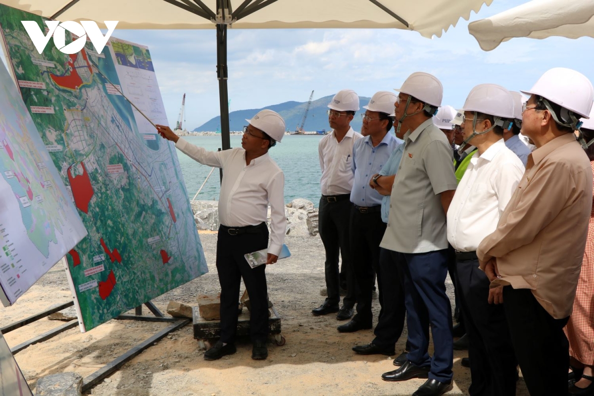 Dịp này, Đoàn công tác Ủy ban Thường vụ Quốc hội đã đi kiểm tra các địa điểm dự kiến xây dựng Trung tâm Tài chính quốc tế và Khu Thương mại tự do Đà Nẵng.