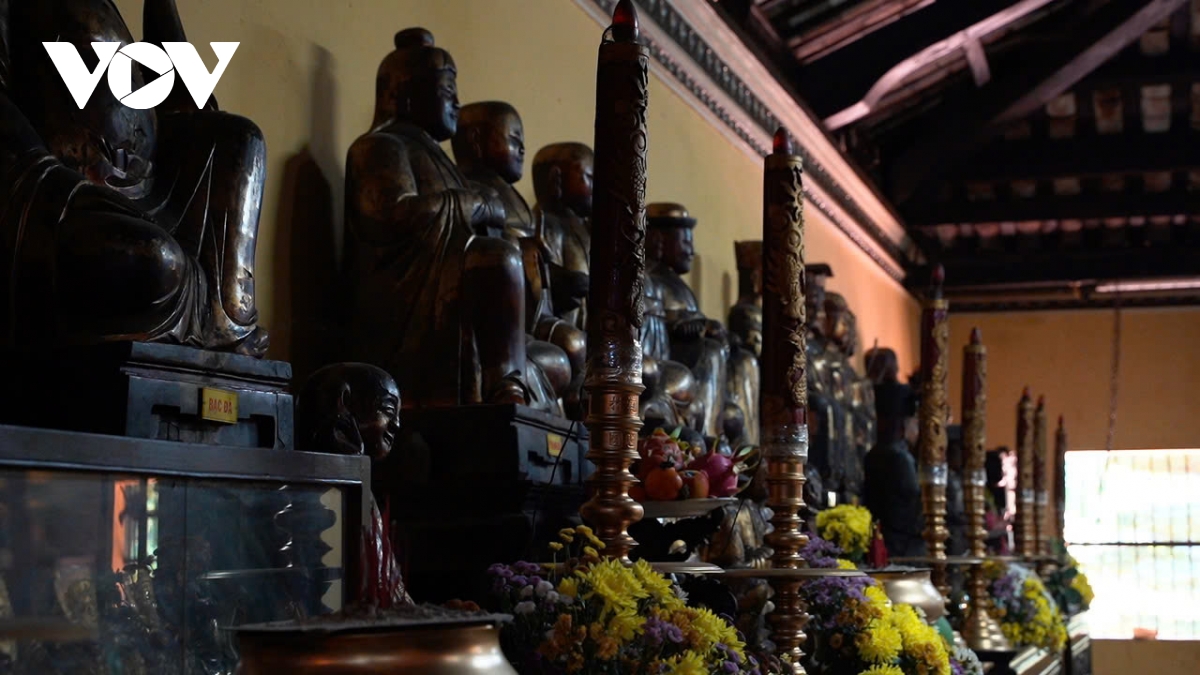 Trong chùa có 113 pho tượng cổ, chủ yếu là tượng gỗ, trong đó có 7 tượng đồng và có nhiều tượng có giá trị lớn.