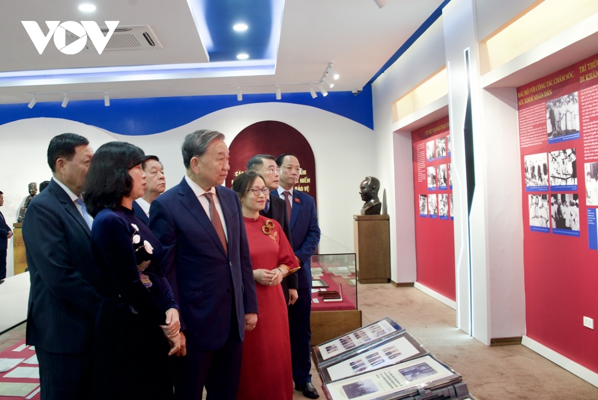 Tổng Bí thư Tô Lâm và các đại biểu thăm phòng truyền thống của Bộ Y tế