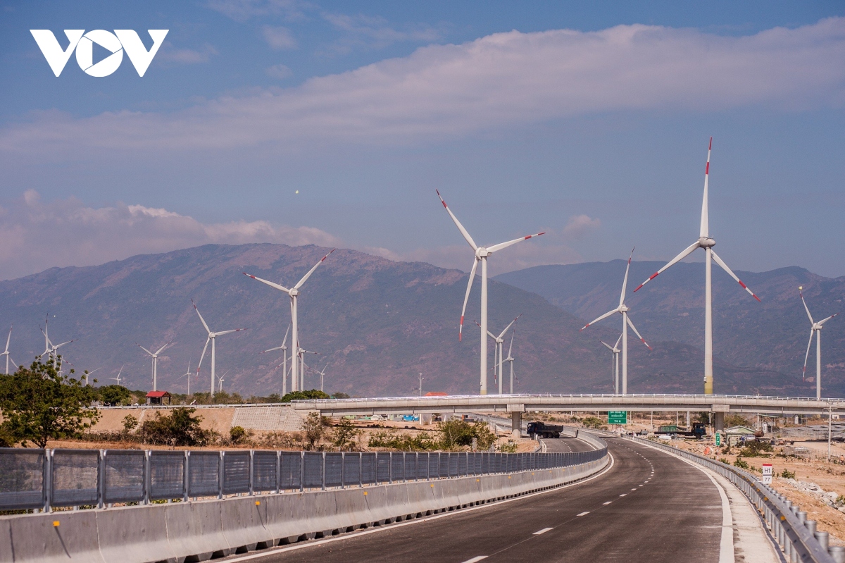 Cảnh đẹp cánh đồng điện gió bên cao tốc Cam Lâm - Vĩnh Hảo.