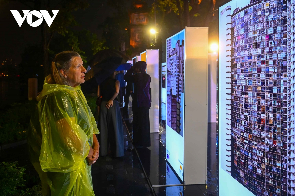 Triển lãm mang đến không khí hiện đại, hòa quyện giữa nghệ thuật nhiếp ảnh và cảnh quan đô thị bên hồ Gươm.