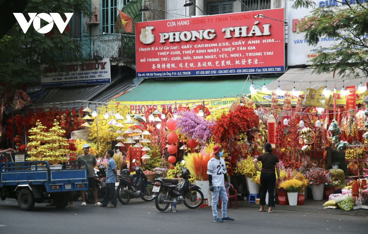 Tuyến đường Hải Thượng Lãn Ông (phường Chợ Lớn, TP.HCM) từ lâu được biết đến là nơi tập trung hàng trăm cửa hàng chuyên kinh doanh đồ trang trí phục vụ các dịp lễ, Tết trong năm. Mỗi khi vào mùa cao điểm, con đường trở nên nhộn nhịp, rực rỡ sắc màu, thu hút đông đảo người dân đến mua sắm, tham quan.