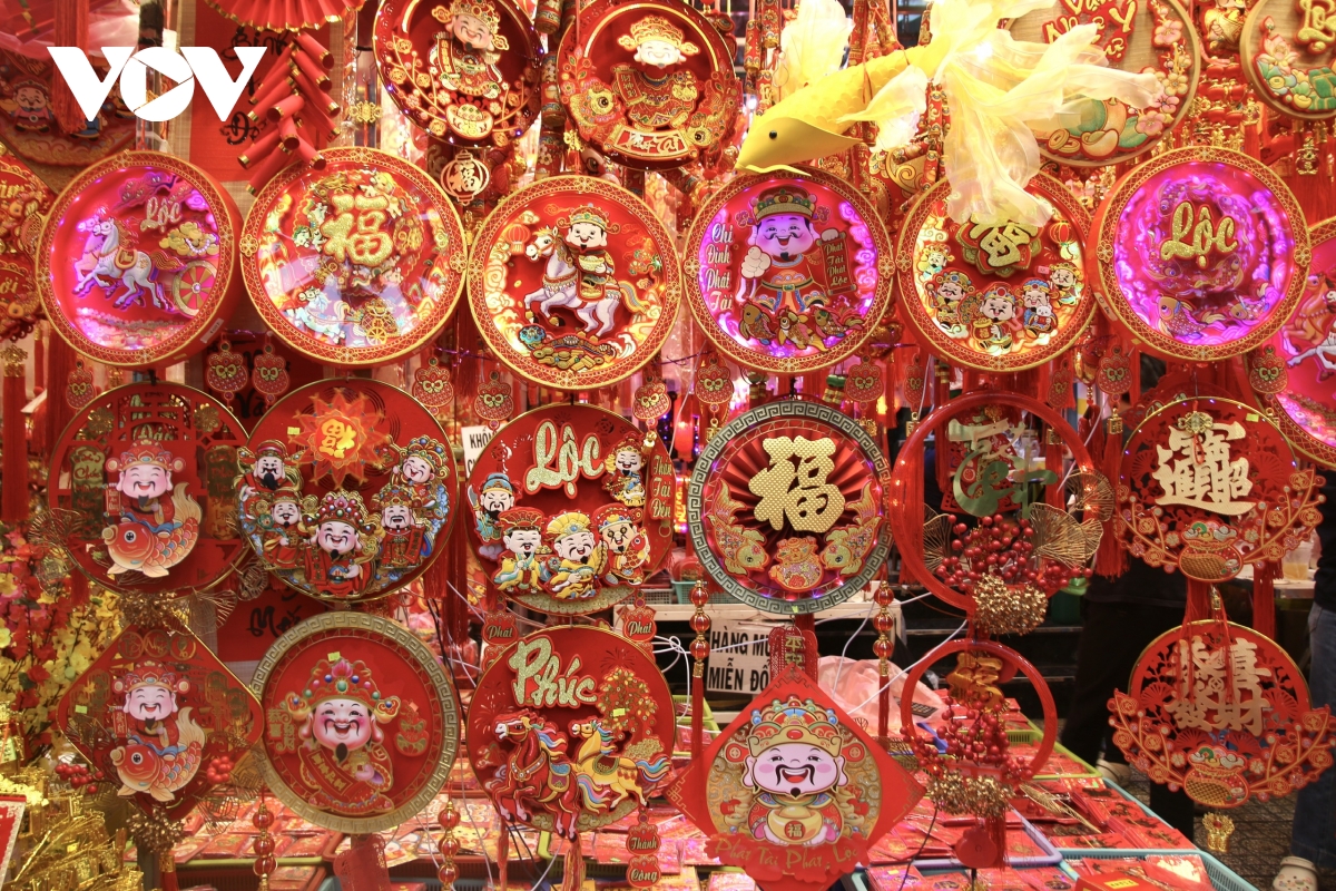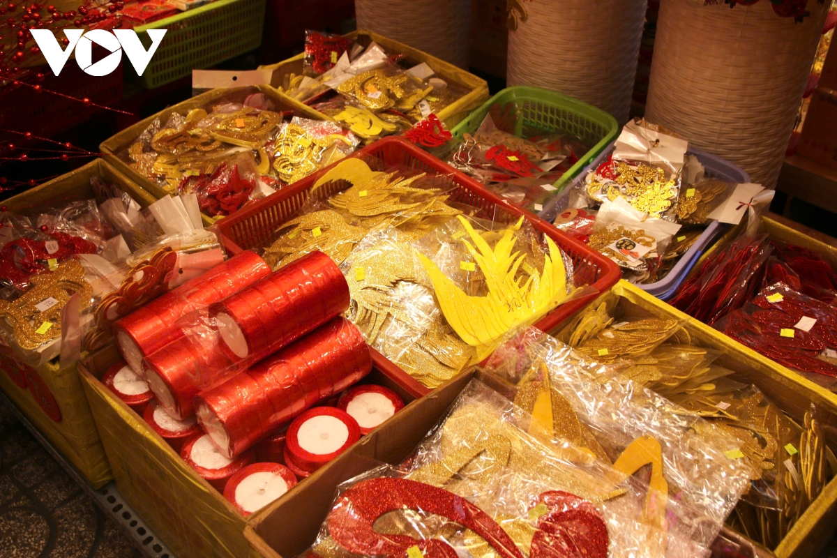 VOV.VN - Mỗi khi nhắc đến đồ trang trí Tết, phần lớn người dân trên địa bàn TP.HCM đều nghĩ ngay đến đường Hải Thượng Lãn Ông (phường Chợ Lớn). Dù còn hơn một tháng mới đến Tết Nguyên đán, song không khí Tết đã sớm lan tỏa nơi đây với sắc đỏ rực rỡ phủ khắp các cửa hàng.